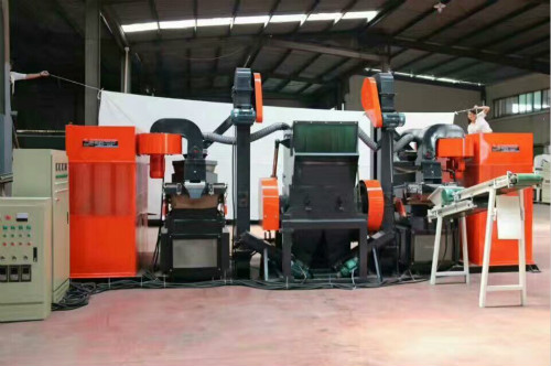 銅米機(jī) 設(shè)備采用三合一除塵裝置,此裝置是現(xiàn)在可靠環(huán)保項(xiàng)目,此除塵裝置共結(jié)合三級(jí)除塵,旋風(fēng)除塵,布袋除塵和空氣凈化器除塵效果,有效地解決粉塵環(huán)保問(wèn)題。咱們的銅米機(jī)設(shè)備采用干式破碎,粉碎,使廢舊電線,電纜等原料經(jīng)過(guò)破碎粉碎后成為金屬和塑料非金屬的分離,分離效果可達(dá)到98%以上。銅米機(jī)設(shè)備噪音小,產(chǎn)量大,創(chuàng)新